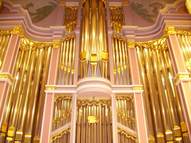Der Vortrag welcher in die drei Schwerpunkte Technik, Geschichte und Hörbeispiele gegliedert war, beeindruckte das Publikum sichtlich. So erfuhr man im Technikbereich was genau passiert, wenn ein Tastendruck oftmals über große Entfernungen einen Pfeifenton aktiviert. Untermalt wurden die technischen Erläuterungen mit Klangbeispielen. Der Zuseher erfuhr wesentliche Fakten: So z. B. das eine Tastenreihe bzw. die Fußreihe als Werk bezeichnet wird. Mehrere Werke gibt es allen voran deswegen, weil es schwierig ist, die passenden Register in entsprechender Geschwindigkeit zu ziehen. Ein Register ist übrigens ein Instrument auf der Orgel. Die Pfeifen, welche größtenteils aus Zinn gefertigt werden, können eine Größe bis zu unglaublichen 64 Fuß (ca. 19,2 Meter) erreichen. Die Orgel hat den größten Tonumfang aller Instrumente. Und das größte Musikinstrument der Welt ist eine Orgel in Atlantic City in der Congress Hall. Geschichtlich war besonders interessant, dass die erste Orgel ca. 3 Jhd. vor Christus von einem Techniker erfunden wurde. Die erste Blütezeit war ca. 100 v. Christus. Beim Vortrag wurden zudem die wesentlichen Epochen im Bezug auf das Orgelspielen vorgestellt. Wer glaubt, Orgeln können nur typische Klänge wiedergeben wurden im Bereich der Hörbeispiele eines Besseren belehrt. So erfuhr man auch von einer italienischen Orgel mit Glockenspiel und Schlagzeug. Es wurden außergewöhnliche Orgeln aus der ganzen Welt in Klang und Bild vorgestellt. So z. B. die größte funktionsfähige Orgel der Welt, welche aus 33.000 (!) Pfeifen besteht. Ein Vergleich: Die Orgel der Waasenkirche hat in etwa 1.800 Pfeifen. Ort: Leoben-Waasen Zeit:2006.10.07 19:00 Uhr |